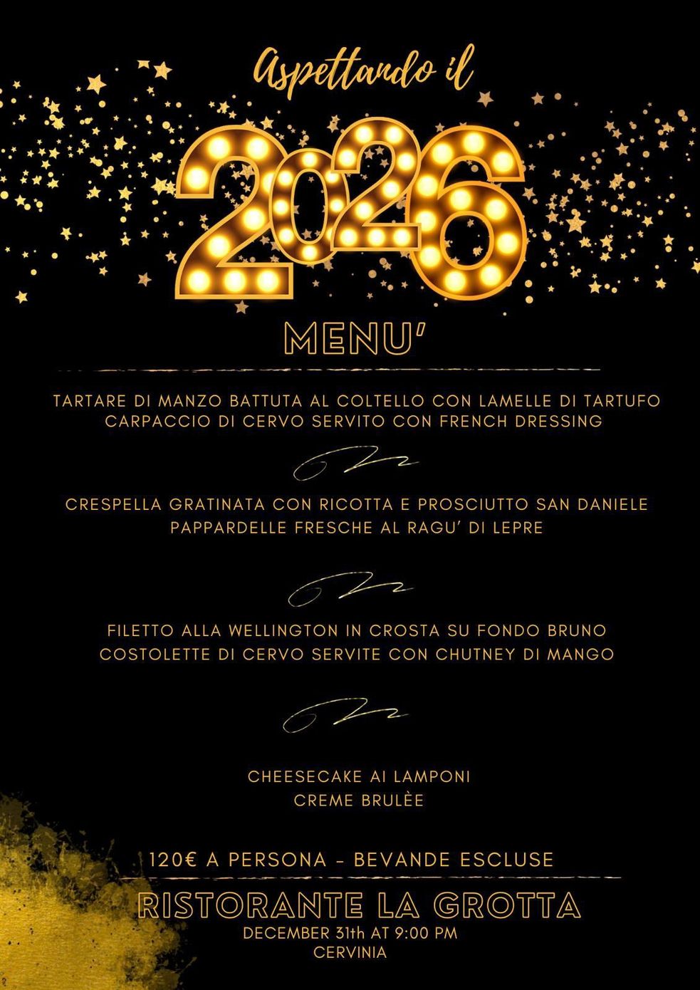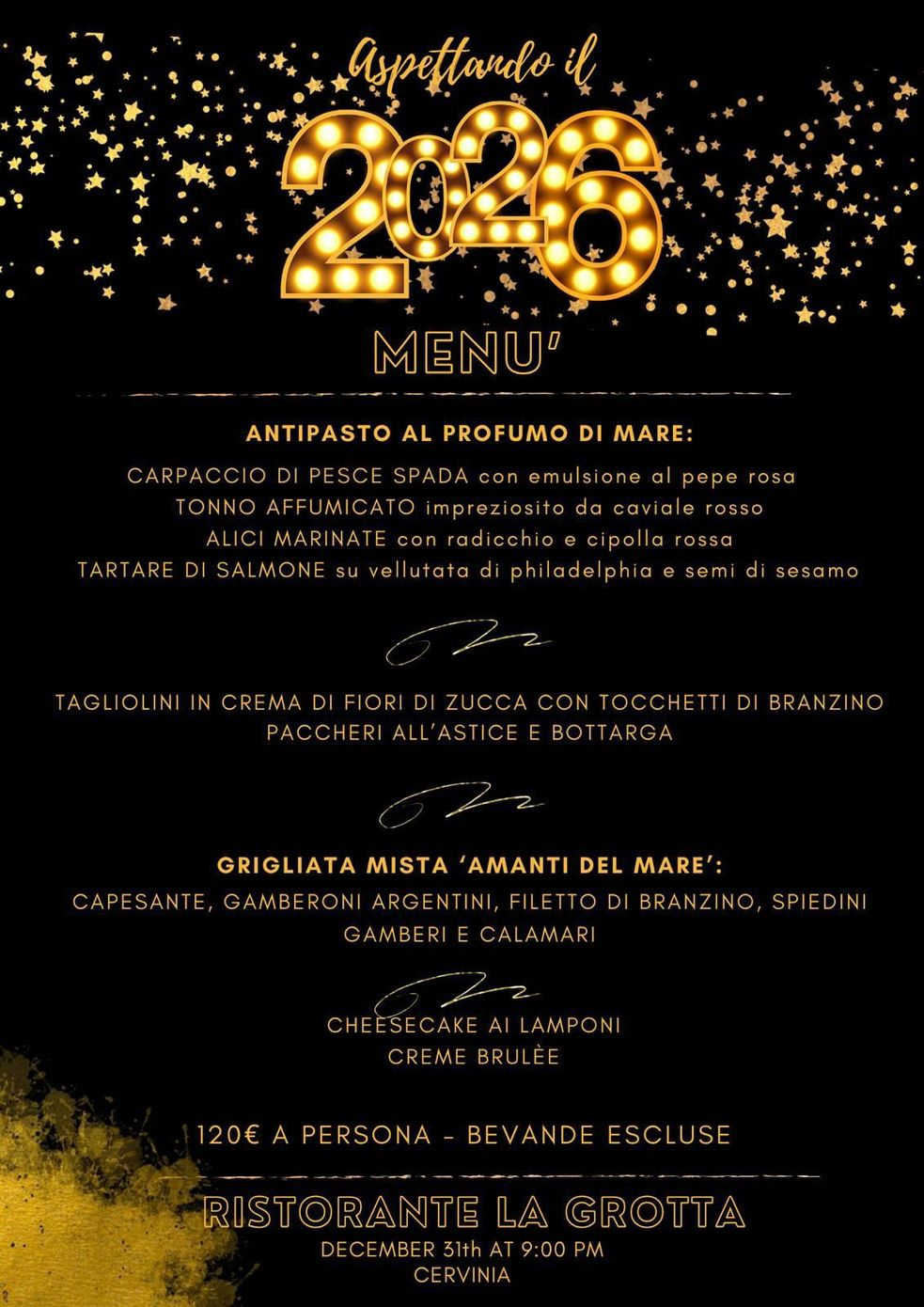 Oltre alla pizzeria, La Grotta propone menu di carne, di pesce e speciali menu vegetariani e vegani, da gustare in compagnia con ottimi vini.